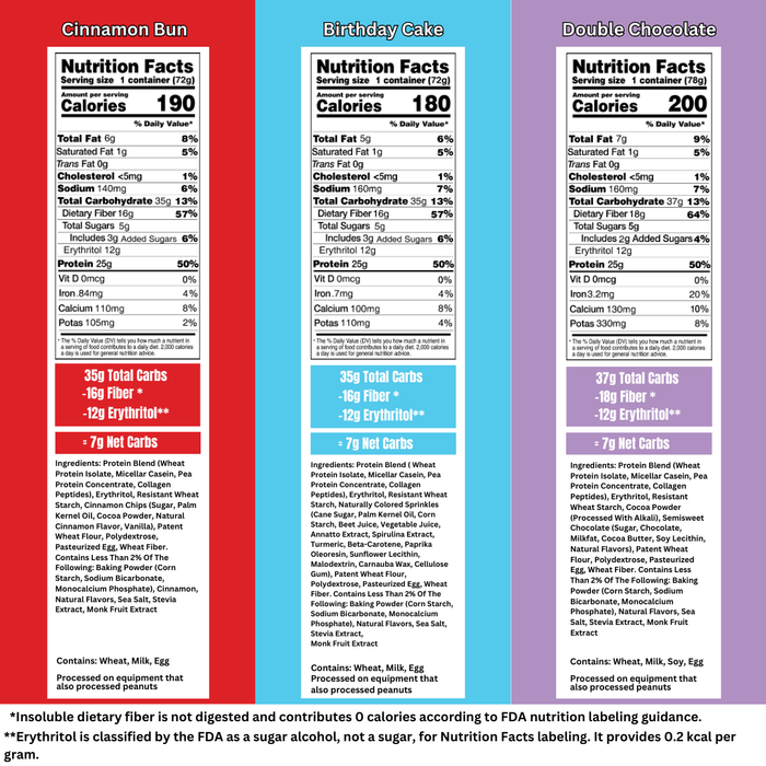 This bundle features our most popular high-protein muffin flavors (Cinnamon Bun, Double Chocolate, and Birthday Cake) so you can snack smarter without overthinking it. No prep, no guilt, just soft, satisfying muffins to keep your goals on track and your cravings in check.