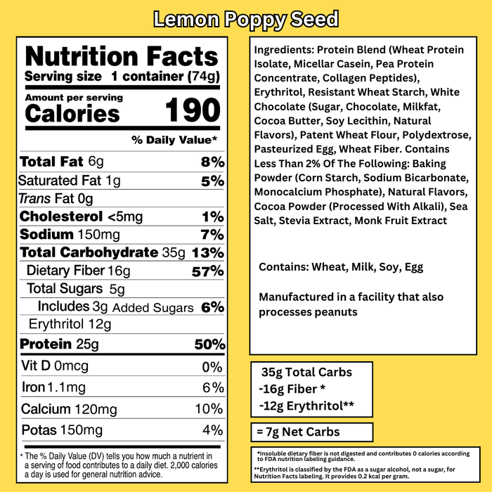 HIGH-PROTEIN: Each muffin is packed with 25g of protein using our 5 ingredient protein blend to ease digestion. The blend includes micellar casein (milk), wheat protein isolate, collagen peptides, pea protein concentrate, and whole egg containing all 9 essential amino acids.